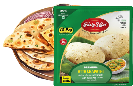 Enjoy soft, wholesome chapathis made easy with Tasty2Eat Instant Atta Chapathi. Prepared fresh and partially cooked, our chapathis only need to be heated before serving no kneading or rolling required!
